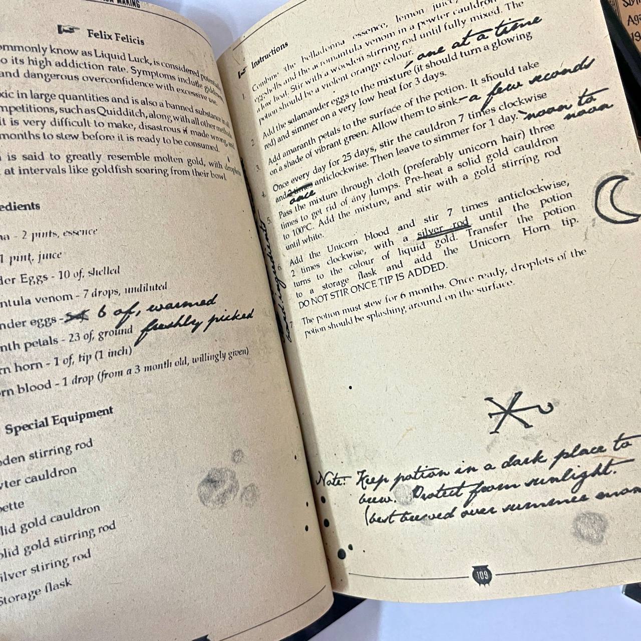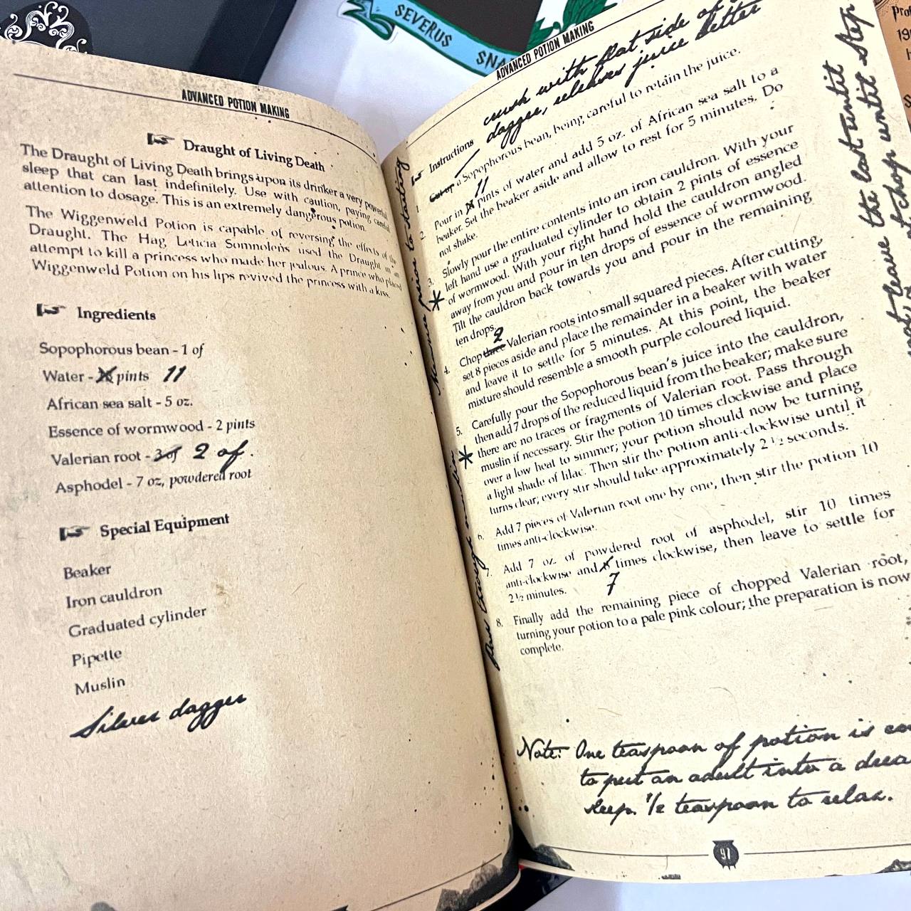 کتاب معجون سازی پروفسور اسنیپ، نسخه کامل مشابه فیلم هری پاتر و شاهزاده دو رگه، با دست خط پروفسور اسنیپ و اسم شاهزاده دو رگه، جلد هارد کاور، 192 صفحه کامل، سایز رقعی، زبان انگلیسی، کاغذ 100 گرمی.