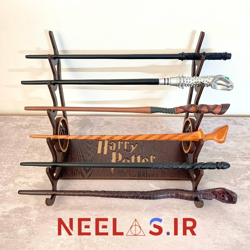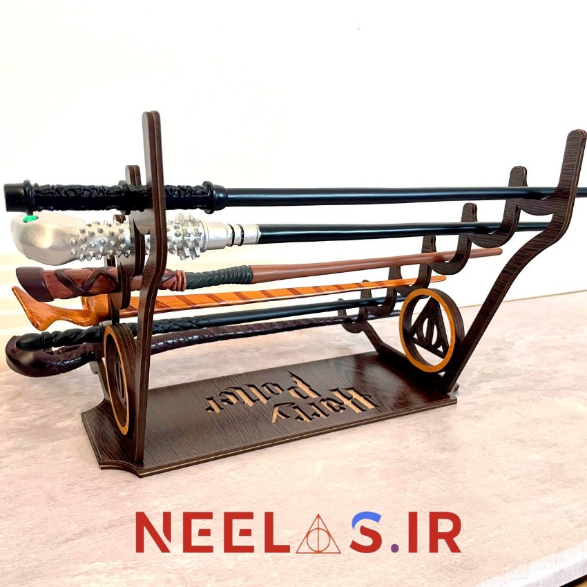 استند چوبدستی رومیزی طرح یادگاران مرگ، این استند چوبی با طراحی جذاب از نماد یادگاران مرگ و حک اسم هری پاتر ساخته شده و دارای شش جایگاه برای چوبدستی است. مناسب برای دکوراسیون، کلکسیونرها یا هدیهای خاص برای دوستداران این دنیای جادویی.