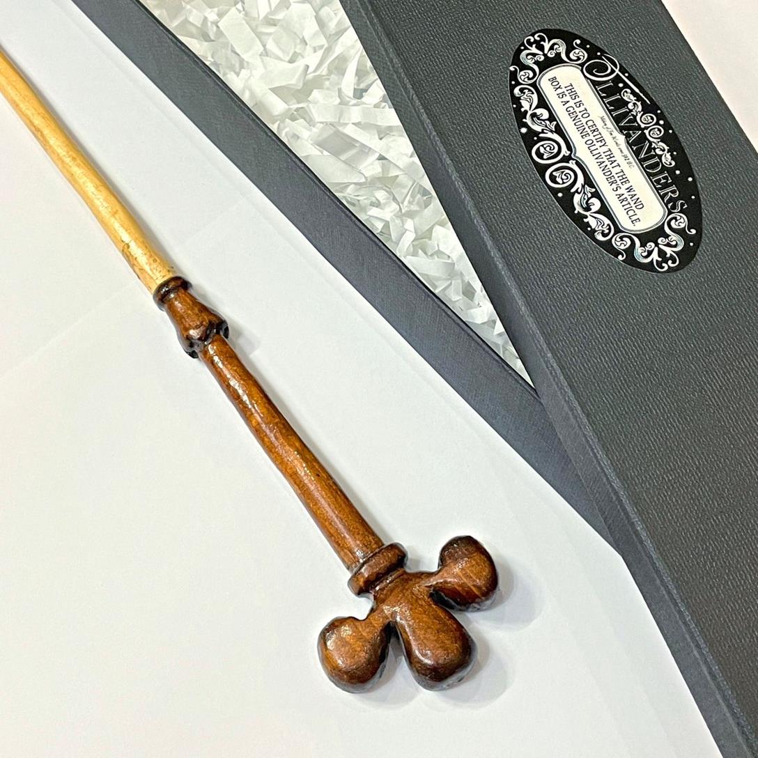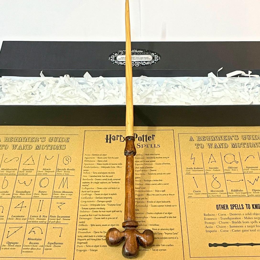 پک چوبدستی شخصیت گیلدروی لاکهارت از جنس چوب با طول 37 سانت با کیفیت و مقاوت بسیار بالا، به همراه جعبه هارد باکس مغازه الیوندر، مجوز حمل چوبدستی، لیست افسون ها و آموزش حرکات چوبدستی.