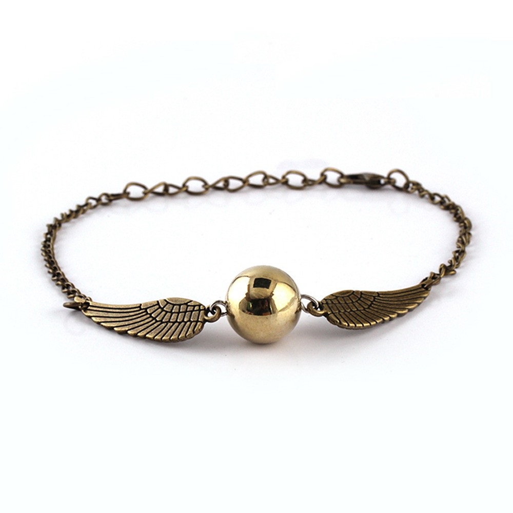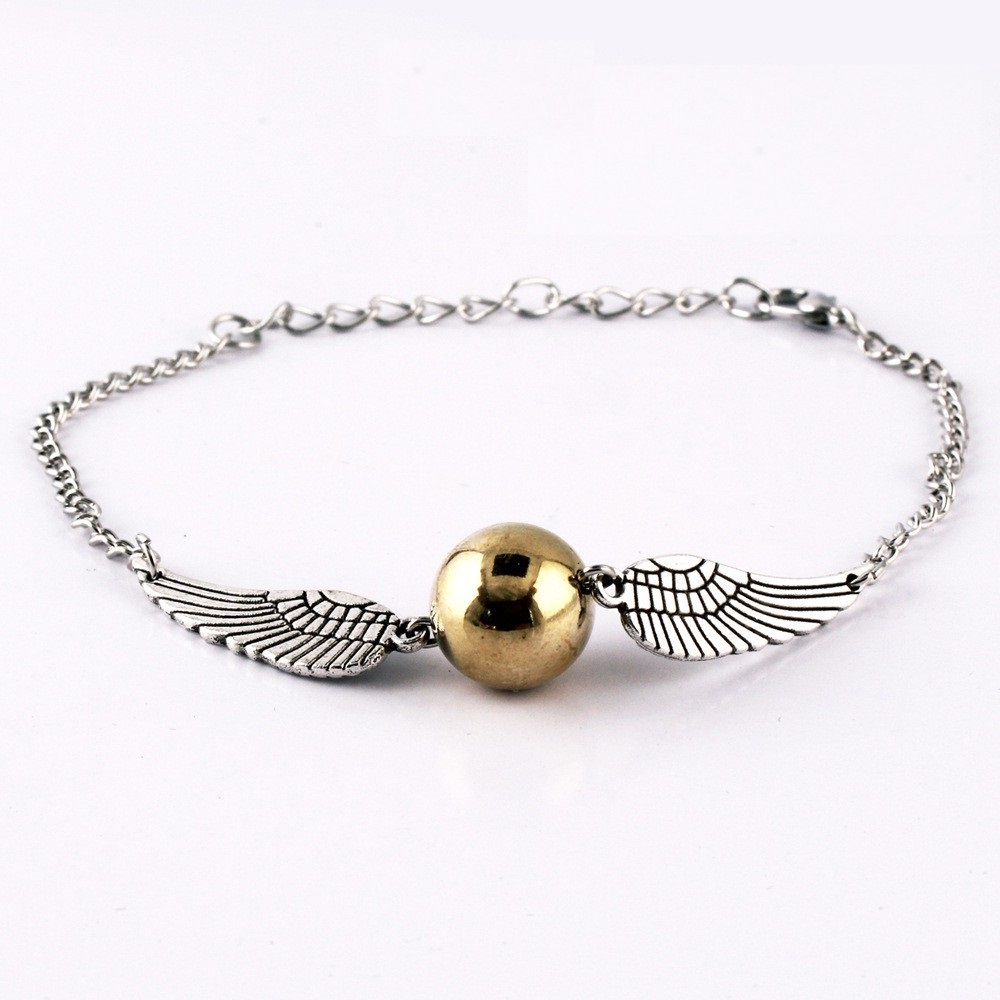 دستبند گوی زرین یا گلدن اسنیچ هری پاتر، این دستبند زیبا با طراحی الهامگرفته از گوی زرین (Golden Snitch) در مسابقات کوییدیچ، از دنیای جادویی هری پاتر برگرفته شده است. طراحی بالدار گوی، نمادی از سرعت، چابکی و پیروزی است. در دو رنگ نقرهای و برنزی موجود میباشد.