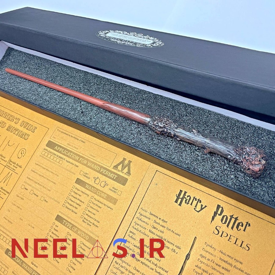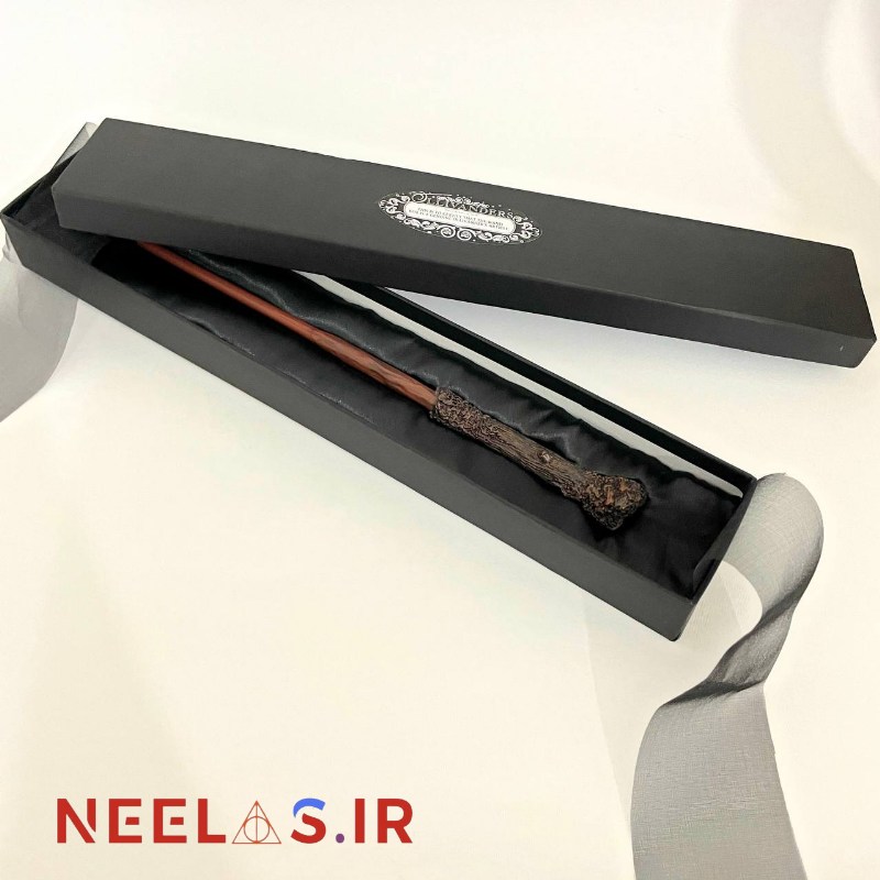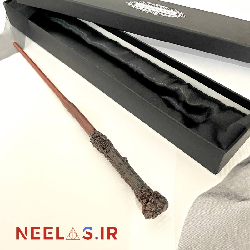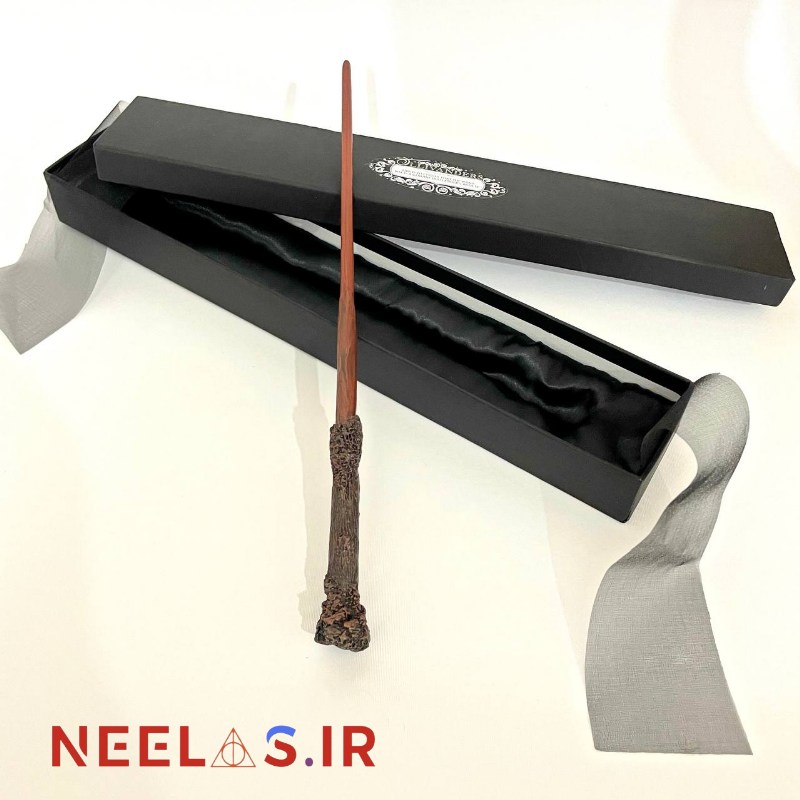 چوبدستی از جنس رزین سخت درجه یک با هسته فلزی با کیفیت بالا و جزئیات بسیار دقیق طراحی شده، طول حدود 37 سانت مقاوت بسیار بالا، وزن سنگین، به همراه جعبه هارد باکس، مجوز حمل چوبدستی، لیست افسون ها و آموزش حرکات چوبدستی.