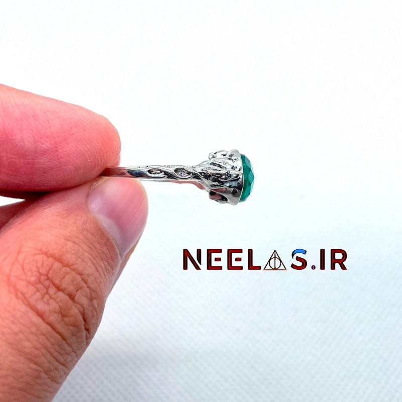 انگشتر کاپیتان جک اسپارو در دزدان دریایی کارائیب،طرح سنگ کریستال سبز قدیمی و حلقه جمجمه های مرگ دزدان دریایی، جنس آلیاژ فلزی آبکاری شده، نگین کریستال.