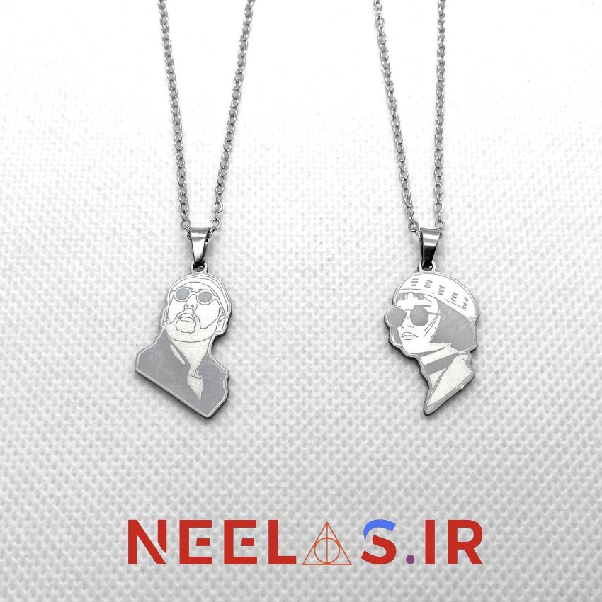 گردنبند استیل جفتی لئون و ماتیلدا، این گردنبند با تصویری از دو شخصیت ماندگار فیلم “Leon: The Professional” طراحی شده است. لئون، قاتل حرفهای با قلبی مهربان، و ماتیلدا، دختربچهای باهوش و جسور، نماد یک رابطهی عمیق و متفاوت هستند.