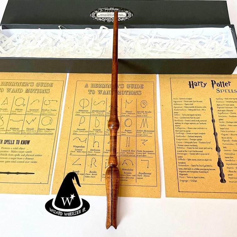 پک چوبدستی شخصیت لونا لاوگود از جنس چوب جنگلی با طول 36 سانت با کیفیت و مقاوت بسیار بالا، به همراه جعبه هارد باکس مغازه الیوندر، مجوز حمل چوبدستی، لیست افسون ها و آموزش حرکات چوبدستی.
