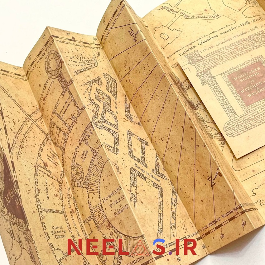 نقشه غارتگران هری پاتر (کد2)، نقشه مکان تمام افراد در مدرسه هاگوارتز را فاش می کرد، جنس کاغذ کرافت 100 گرم، چاپ دورو، ابعاد در حالت باز شده 23 سانت در 76 سانت است.