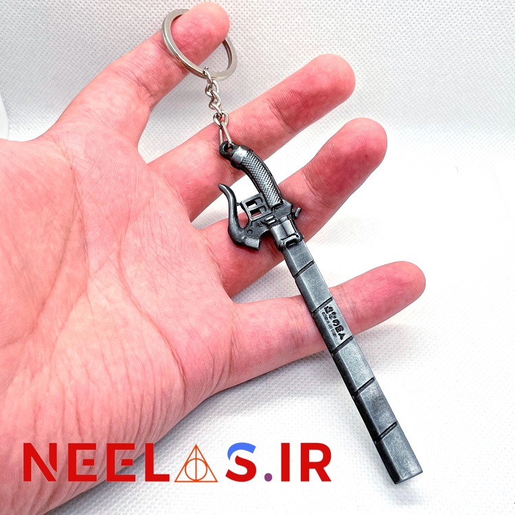جاکلیدی شمشیر رپلیکا انیمه اتک آن تایتان، جنس آلیاژ فلزی، طول حدود ۱۱ سانت. رپلیکا شمشیر ترسناکی است که توسط شخصیت اصلی Ehren برای نبرد با تایتانها و کمک به محافظت از آنچه از بشریت باقی مانده است استفاده میکند.
