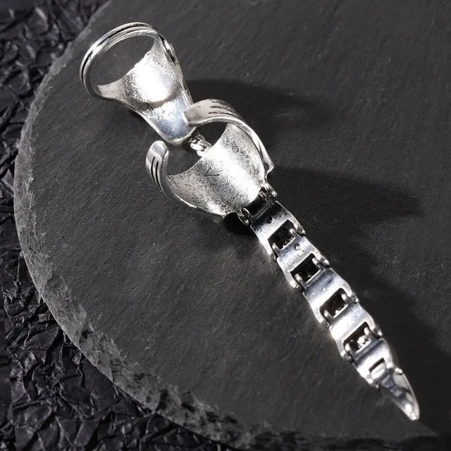 انگشتر طرح عقرب با دم متحرک، دم عقرب با خم کردن انگشت به حالت خمیده در می آید مناسب تخلیه استرس می باشد. جنس آلیاژ فلزی آبکاری شده، آبکاری معمولی، رنگ مشکی نقره ای، طول حدود 11 سانت، اندازه قابل تنظیم.