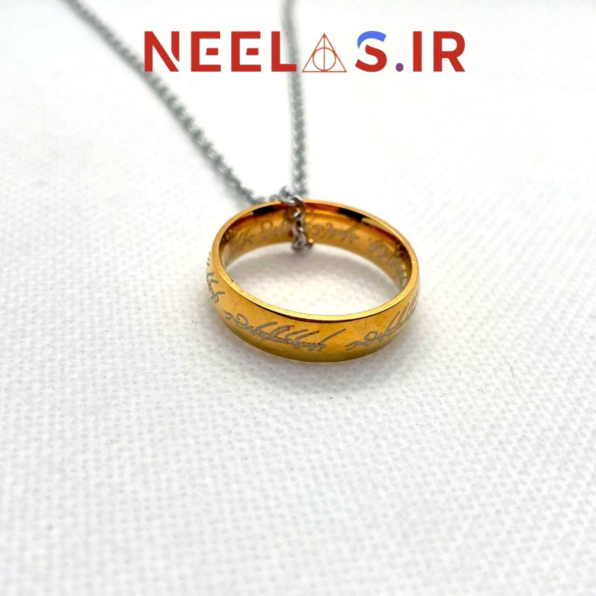 گردنبند استیل یگانه حلقه ارباب حلقه ها با حکاکی لیزری با کیفیت بالا جنس استیل تیتانیوم قابل سفارش با زنجیر استیل طلایی و نقره ای و بند چرمی. قابل استفاده به صورت گردنبند و انگشتر.